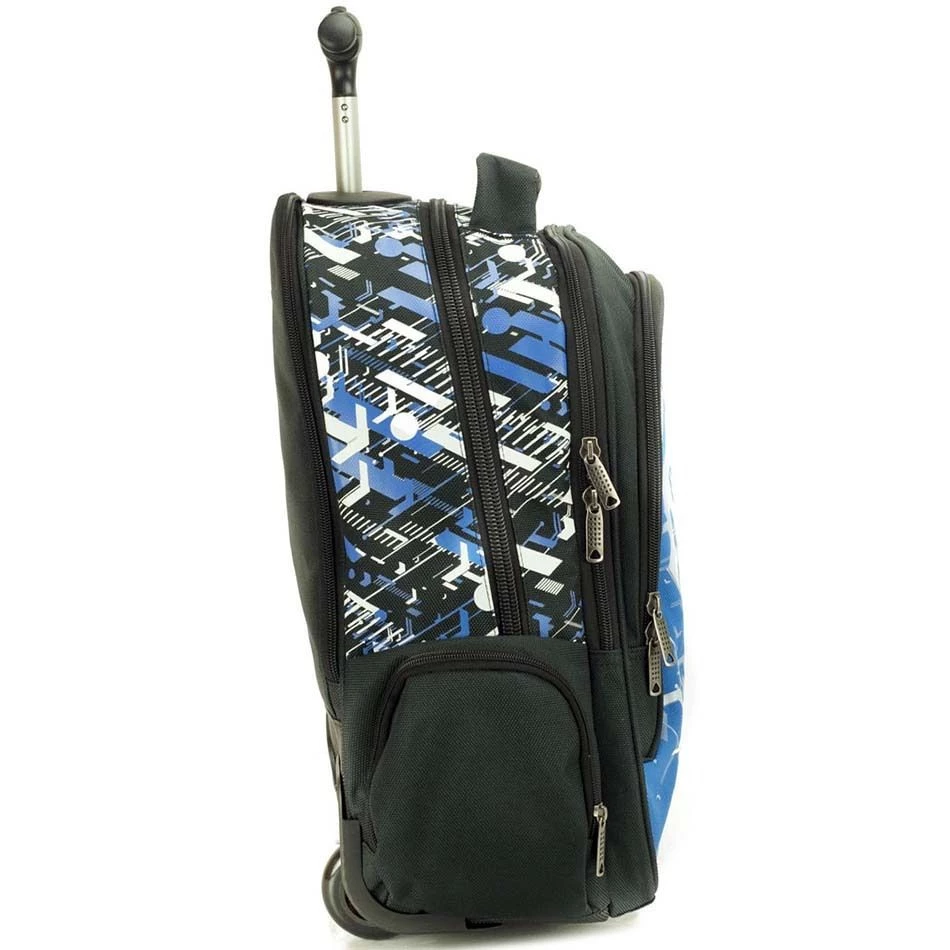 Σχολική τσάντα η οποία μπορεί να χρησιμοποιηθεί ως τρόλεϊ, κατάλληλη για παιδιά δημοτικού της εταιρίας Back Me Up σε μπλε χρώμα.
