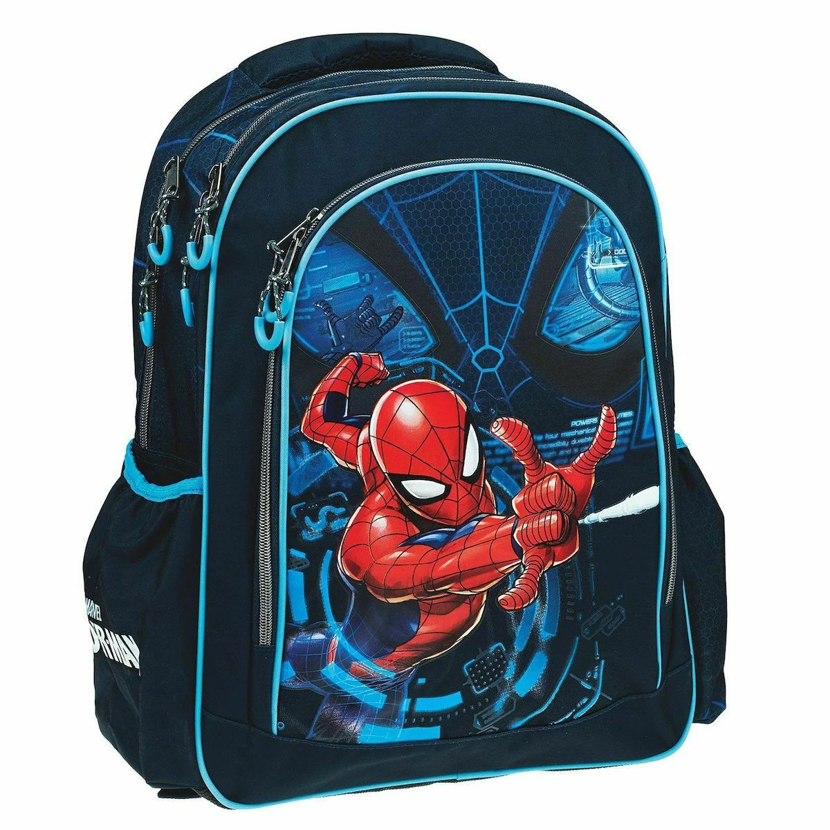 Gim Σάκος Οβάλ Spiderman Digital Δύο κεντρικές θέσεις και μία επιπλέον μπροστινή. Ενισχυμένη πλάτη. Πλαϊνές θήκες για παγούρια. Ενισχυμένοι ιμάντες πλάτης. Ενισχυμένη λαβή χειρός.