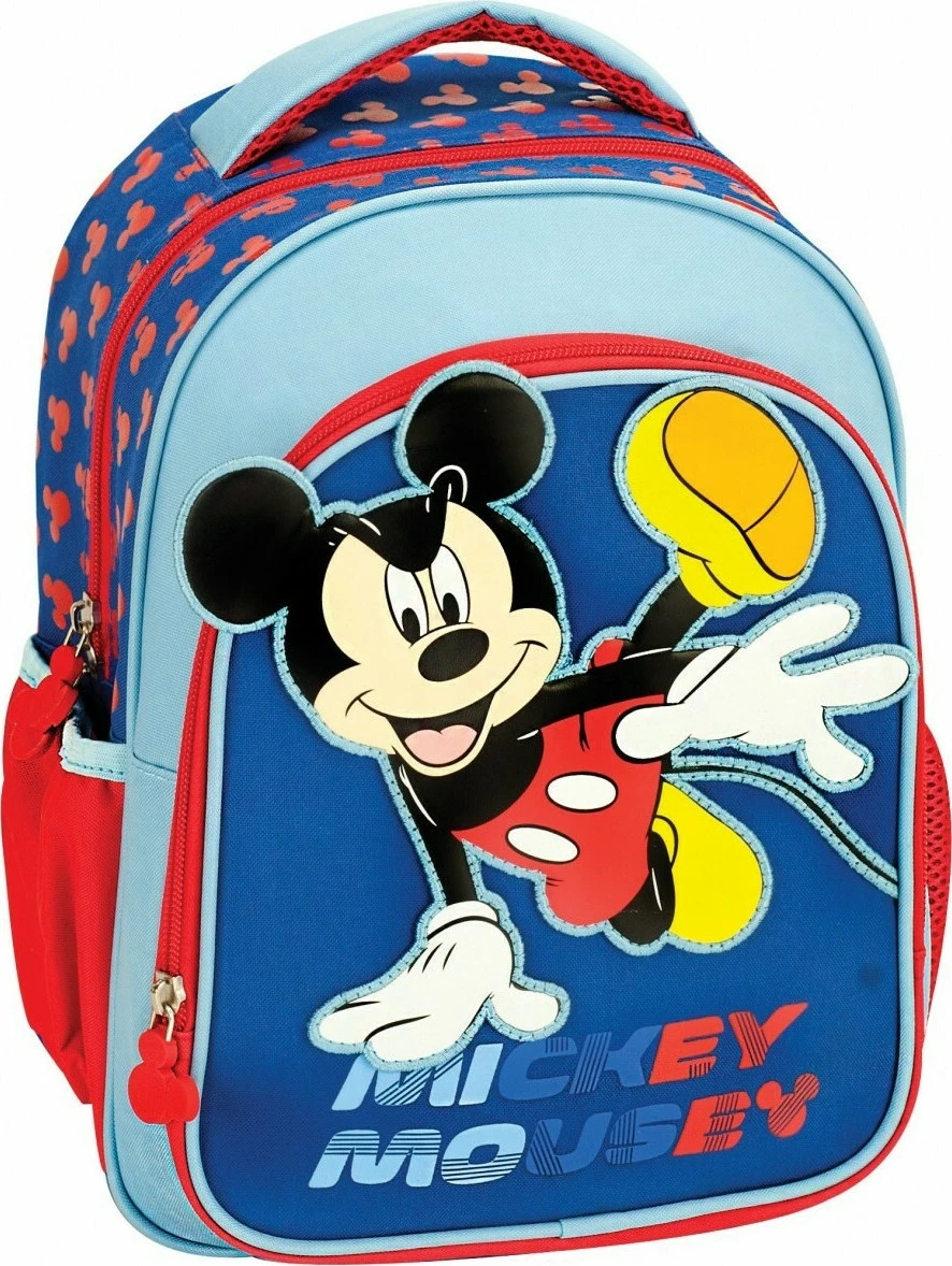 Gim Τσάντα Νηπιαγωγείου Mickey Team Μία κεντρική θέση και μία επιπλέον μπροστινή Πλαϊνές θήκες για παγούρια Ενισχυμένοι ιμάντες πλάτης Ενισχυμένη λαβή χειρός. Χωρητικότητα: 12lt Διαστάσεις: 25x15x30cm (ΜxΠxΥ)