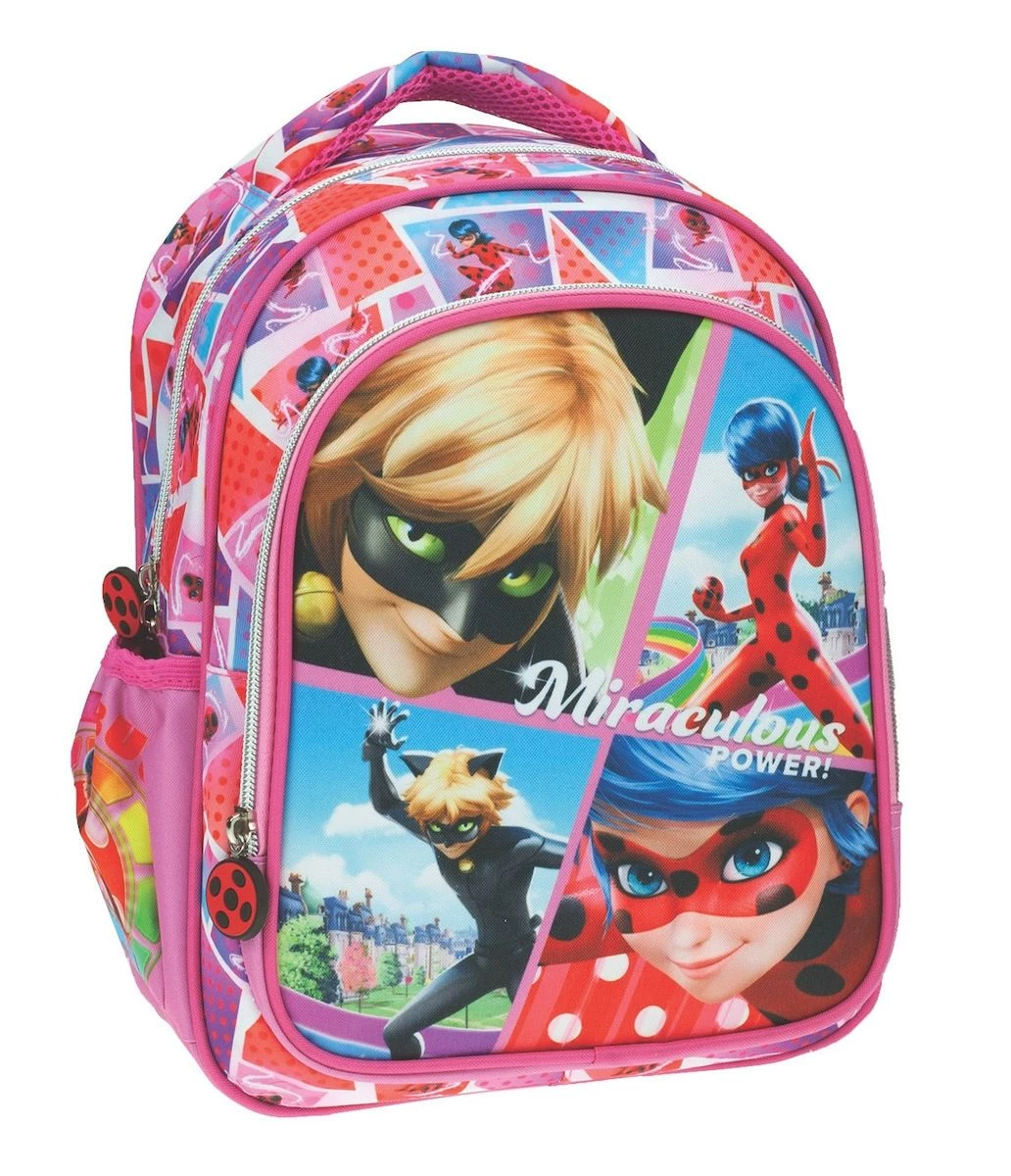 Gim Τσάντα Νηπιαγωγείου Miraculous Power Κεντρική θήκη με φερμουάρ Μπροστινή μικρότερη θήκη με φερμουάρ Πλαϊνές τσέπες με δίχτυ για τη μεταφορά παγουριού Ρυθμιζόμενοι ιμάντες πλάτης