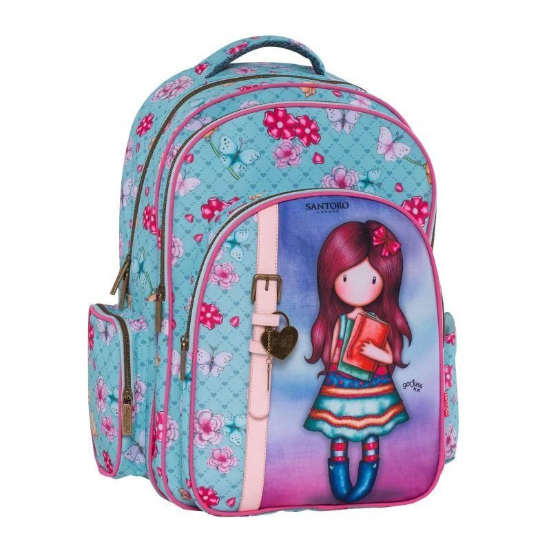Graffiti Σάκος Πολυθεσιακός Gorjuss Mint Σχολική τσάντα η οποία μπορεί να φορεθεί στην πλάτη, κατάλληλη για παιδιά δημοτικού της εταιρίας Santoro με θέμα Gorjuss σε γαλάζιο χρώμα.