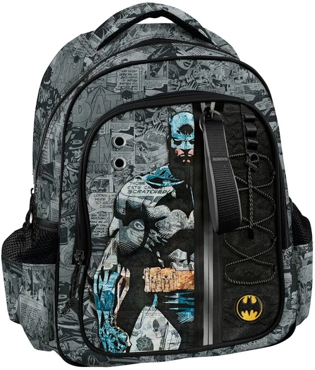 Graffiti τσάντα νηπιαγβγείου Batman Σακίδιο νηπιαγωγείου με ανατομική πλάτη με ρυθμιζόμενους ιμάντες •2 ευρύχωρες θήκες •2 πλαινές θήκες (1 με φερμουάρ και 1 με σούρωμα κατάλληλη για παγούρι) •Ανθεκτική λαβή •Μεταλλικά φερμουάρ *Διαστάσεις: 24x11x30 εκ (MxΠxΥ)