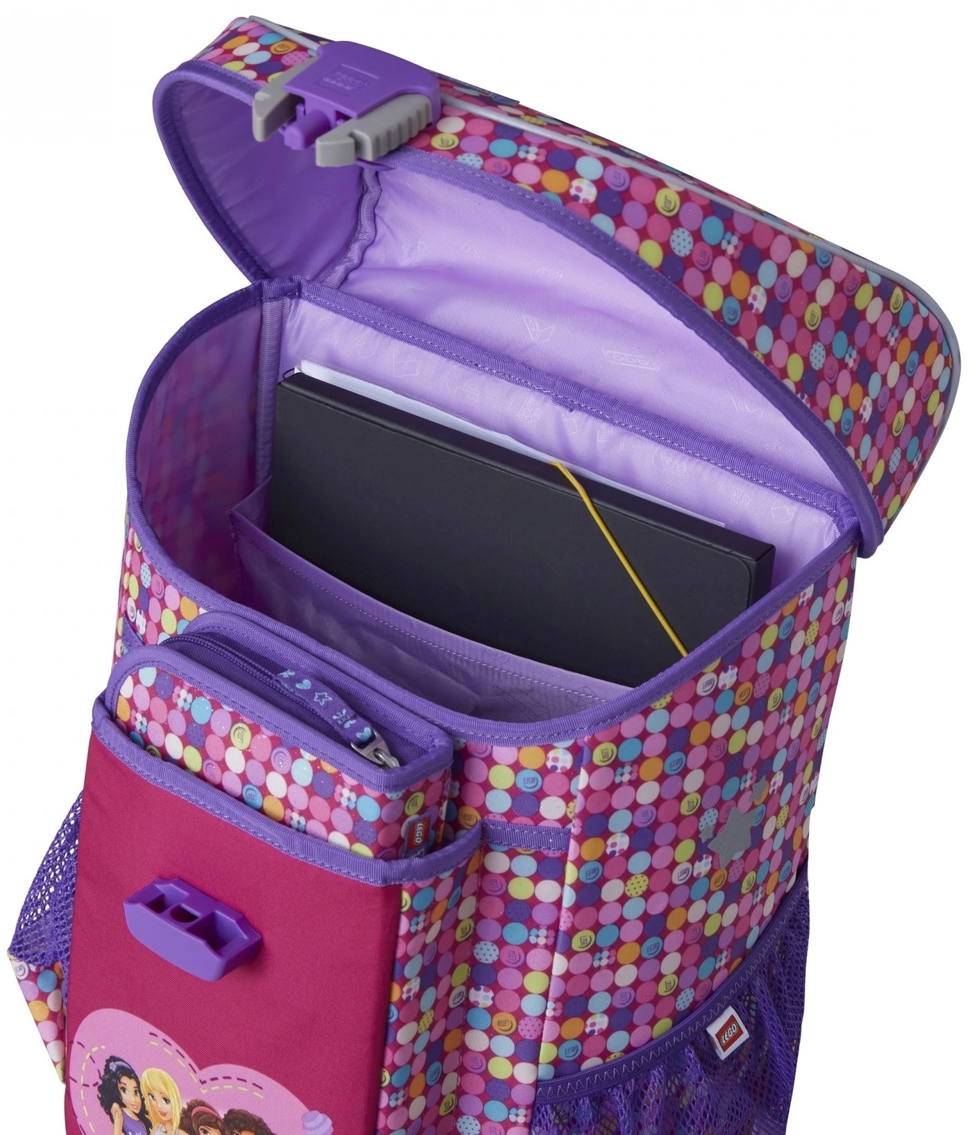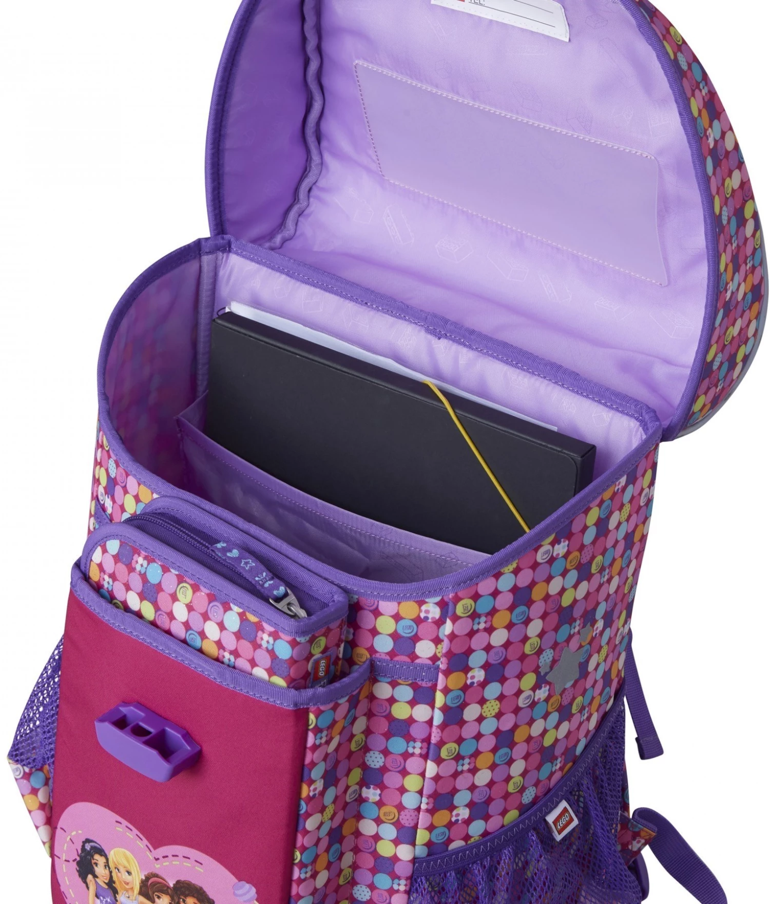 LEGO Σάκος Easy: Friends Confetti •Διαχωριστικό εσωτερικού χώρου για να στέκονται τα πιο βαριά βιβλία πιο κοντά στην πλάτη – για ορθότερη στάση σώματος •Εργονομικά σχεδιασμένο πλαίσιο πλάτης •Ποδαράκια βάσης στο κάτω μέρος για σταθερότητα •Αποσπώμενος κρίκος μπρελόκ •Ετικέτα και πρόγραμμα στην εσωτερική πλευρά του καλύμματος •Μπροστινή θήκη για κασετίνα…