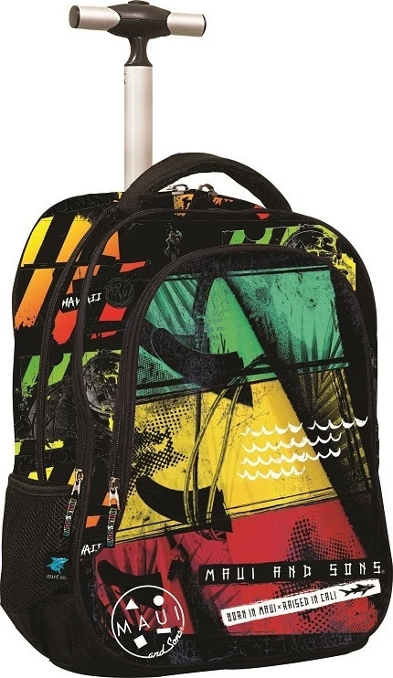 Maui and Sons σάκος τρόλεϋ Board •Δύο κεντρικές θέσεις και μία επιπλέον μπροστινή •Ενισχυμένοι ιμάντες πλάτης •Πλαϊνές θήκες για παγούρια •Ενισχυμένη λαβή χειρός •Προστασία για τα ροδάκια όταν η τσάντα χρησιμοποιείται σαν σακίδιο •Δίοδος για ακουστικά •Επένδυση με τυπωμένη φόδρα