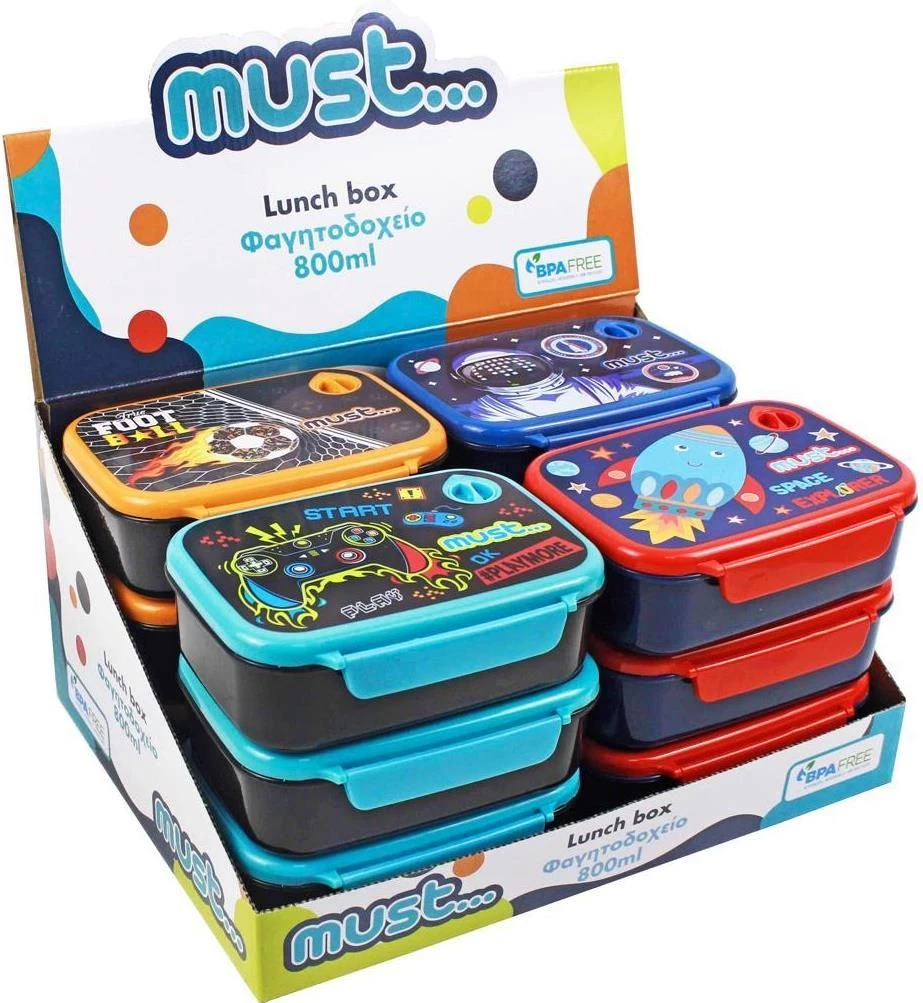 Must Φαγητοδοχείο Παιδικό 800ml για Αγόρι σε 4 Σχέδια (Play More, True Football, Astronaut, Space Rocket) με ανθεκτικό BRA Free υλικό κατασκευής και αεροστεγές κλείσιμο για να διατηρείται το φαγητό φρέσκο, γευστικό και ασφαλές στο σχολείο, τη παιδική χαρά και τη βόλτα.