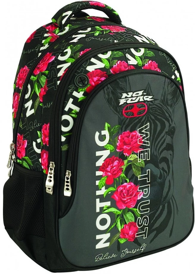Back Me Up Σάκος Οβάλ Rose Zebra Σακίδιο σχολικό από την No Fear με ενισχυμένους ιμάντες πλάτης και λαβή χειρός. Διαθέτει εσωτερική θήκη οργάνωσης με πολλές βοηθητικές θέσεις. Εσωτερικά είναι επενδυμένο με τυπωμένη φόδρα. Η ανατομική πλάτη ανακουφίζει από το καθημερινό κουβάλημα. Επιπλέον διαθέτει θήκη για ακουστικά, πλαϊνή θήκη για…