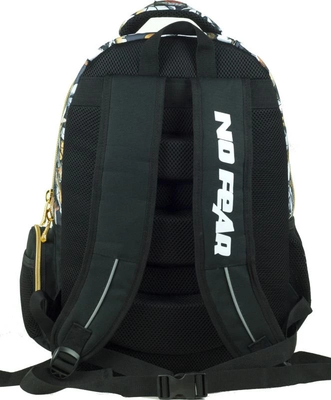 No Fear Σάκος Gold Περιλαμβάνει: •Δύο κεντρικές θέσεις και μία επιπλέον μπροστινή με εσωτερική θήκη οργάνωσης •Ανατομική πλάτη •Πλαϊνές θήκες για παγούρια •Ενισχυμένοι ιμάντες πλάτης με αντανακλαστικά ρέλια •Ελαστικός ιμάντας στήθους •Ενισχυμένη λαβή χειρός •Δίοδος για ακουστικά •Επένδυση με τυπωμένη φόδρα