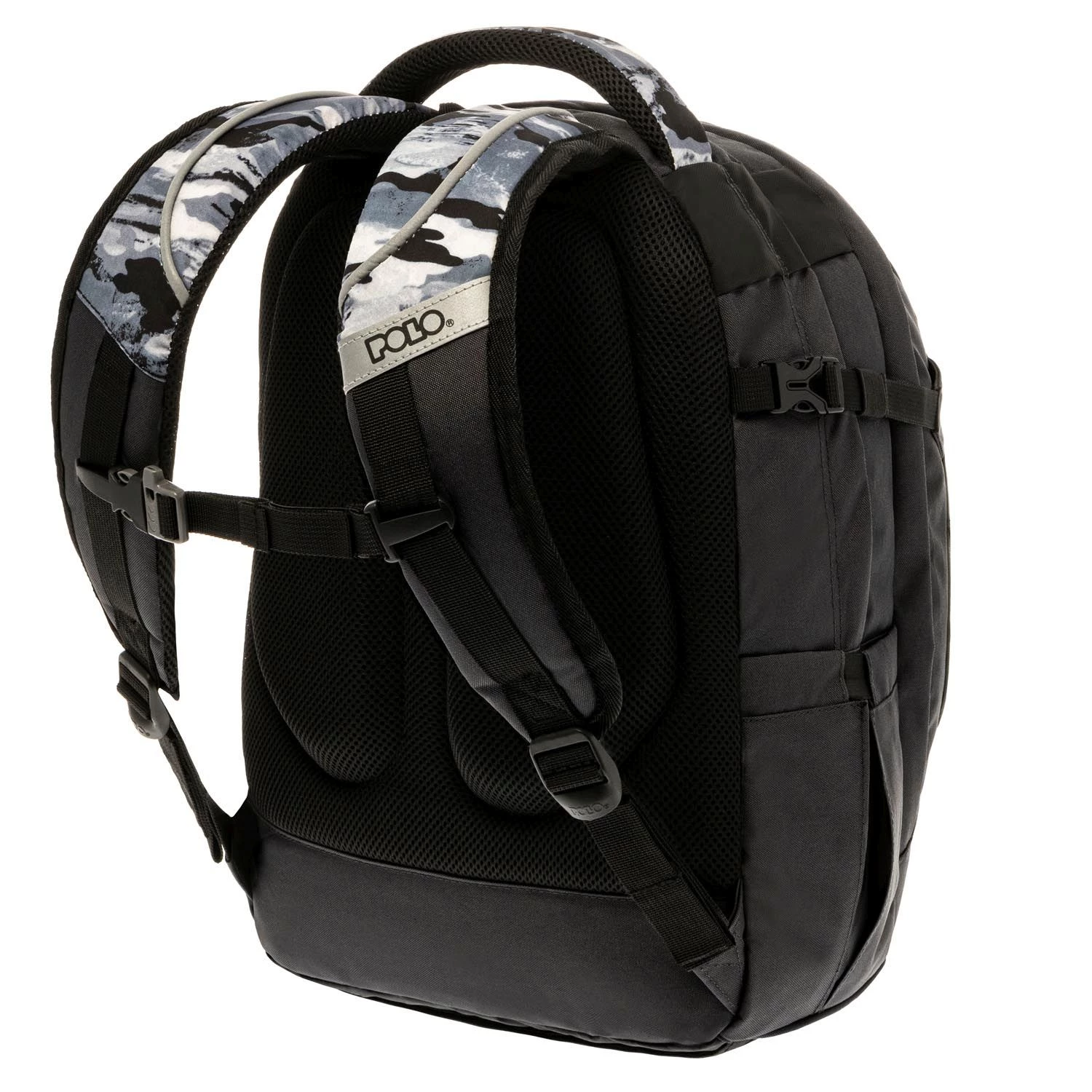Polo Σάκος Cryptic Military Grey 2 κεντρικές θήκες 2 μπροστινές θήκες Ενισχυμένο χερούλι για πιο σταθερό κράτηµα και ξεκούραστη μεταφορά Έξοδος ακουστικών Μπροστινοί ιμάντες συγκράτησης Πλαϊνοί ιμάντες σύσφιξης