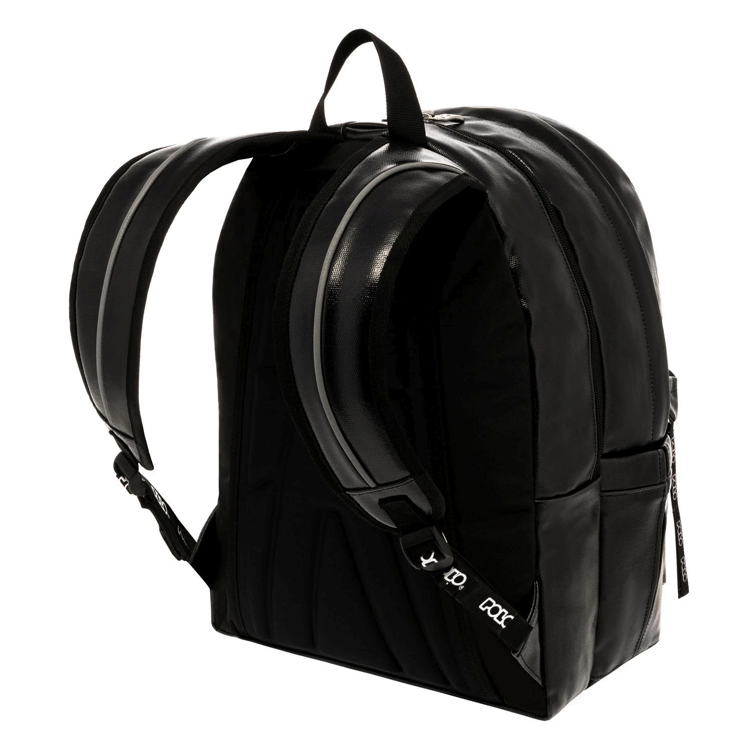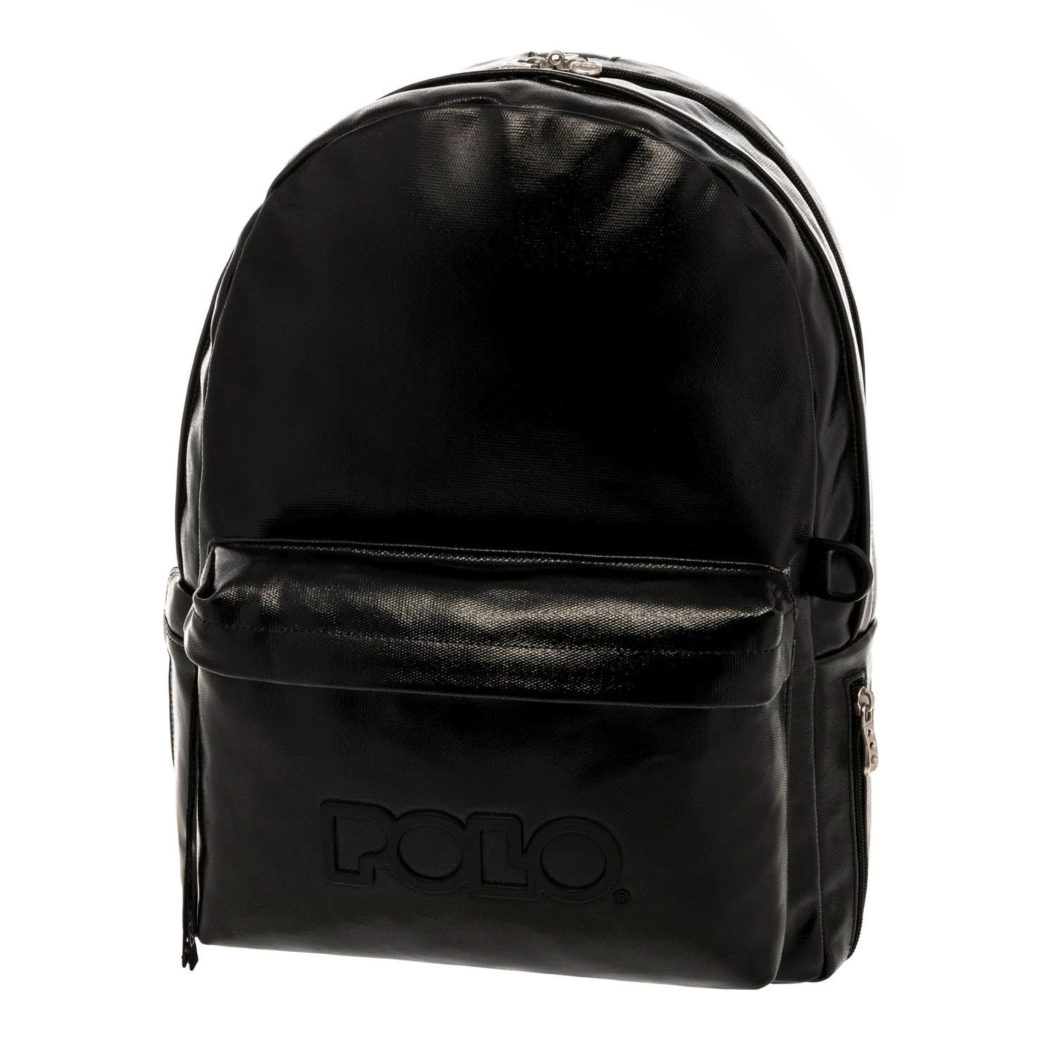Polo Σάκος Vinyl Μαύρο Το νέο super σακίδιο VINYL της POLO 1 μεγάλη κεντρική θήκη µε εσωτερικό χώρισμα 1 Μπροστινή τσέπη 1 Μικρή κλειστή πλακέ θήκη κινητού Πλαϊνές θήκες Ενισχυμένη τριγωνική πλάτη Έξοδος ακουστικών