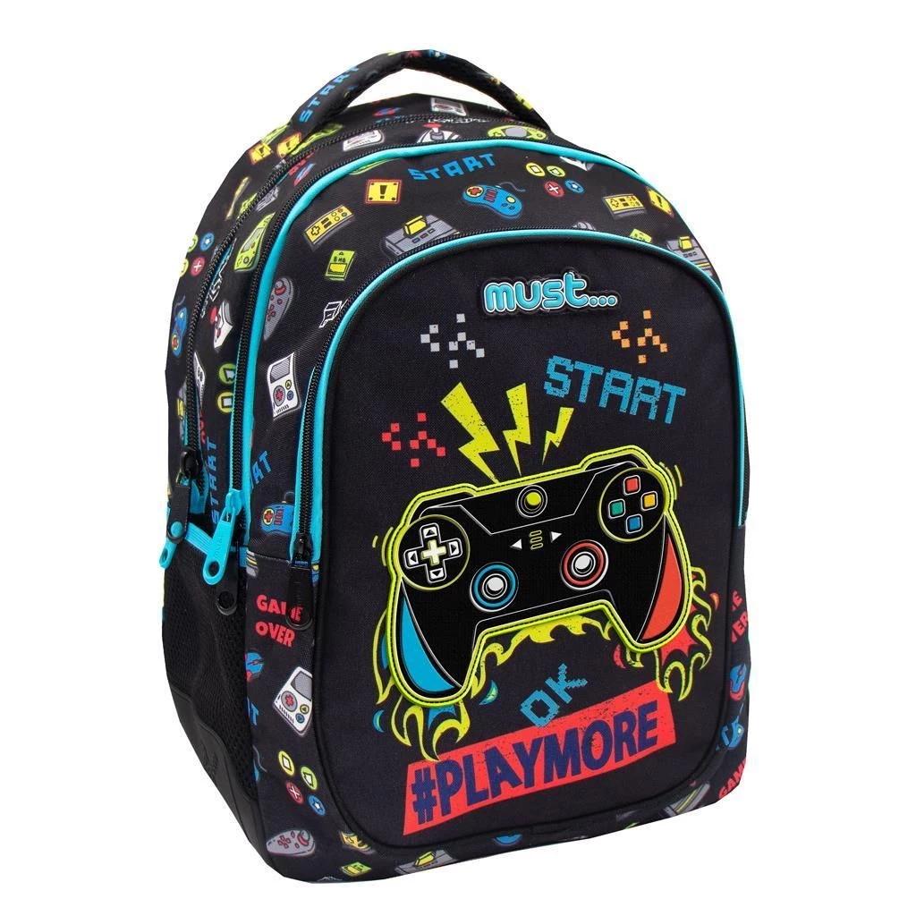 Η Must Play More Σχολική Τσάντα Πλάτης Δημοτικού με 3 θήκες ξεχωρίζει για το σχέδιο Τηλεχειριστήριο video game! Ιδανικό για μαθητές που θέλουν μια πρακτική και ανθεκτική σχολική τσάντα με εργονομικό σχεδιασμό για ασφαλή, άνετη και εύκολη μεταφορά όλων των απαραίτητων σχολικών ειδών στο σχολείο. Ένα ξεχωριστό σακίδιο πλάτης δημοτικού για αγόρια που θα ενθουσιάσει!