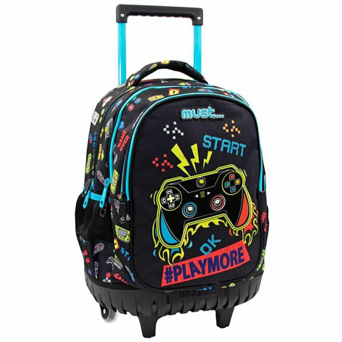 Η Must Play More Σχολική Τσάντα Τρόλεϊ Δημοτικού με 3 θήκες ξεχωρίζει για το υπέροχο σχέδιο Τηλεχειριστήριο video game! Ιδανική για μαθητές που θέλουν μια πρακτική και ανθεκτική σχολική τσάντα με εργονομικό σχεδιασμό για ασφαλή, άνετη και εύκολη μεταφορά όλων των απαραίτητων σχολικών ειδών στο σχολείο. Μια ξεχωριστή σχολική τσάντα δημοτικού για αγόρια που συνδυάζει σακίδιο πλάτης και τρόλεϊ μαζί!