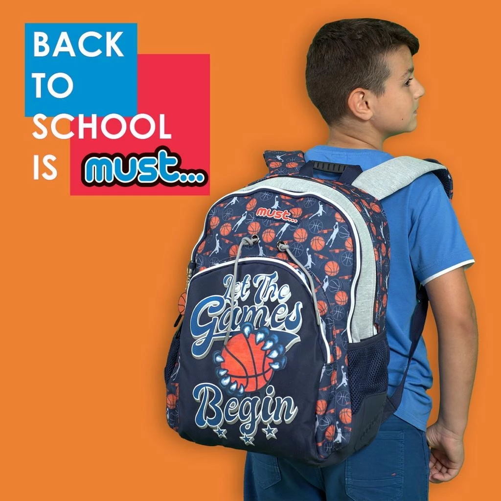 – Η Τσάντα Πλάτης Δημοτικού Must Energy Let The Games Begin με 3 θήκες (2 κεντρικές θήκες, 1 μπροστινή θήκη) διαθέτει επιπλέον 1 θήκη οργάνωσης για τα βιβλία, τα τετράδια, την κασετίνα και όλα τα απαραίτητα είδη γραφής για το σχολείο
